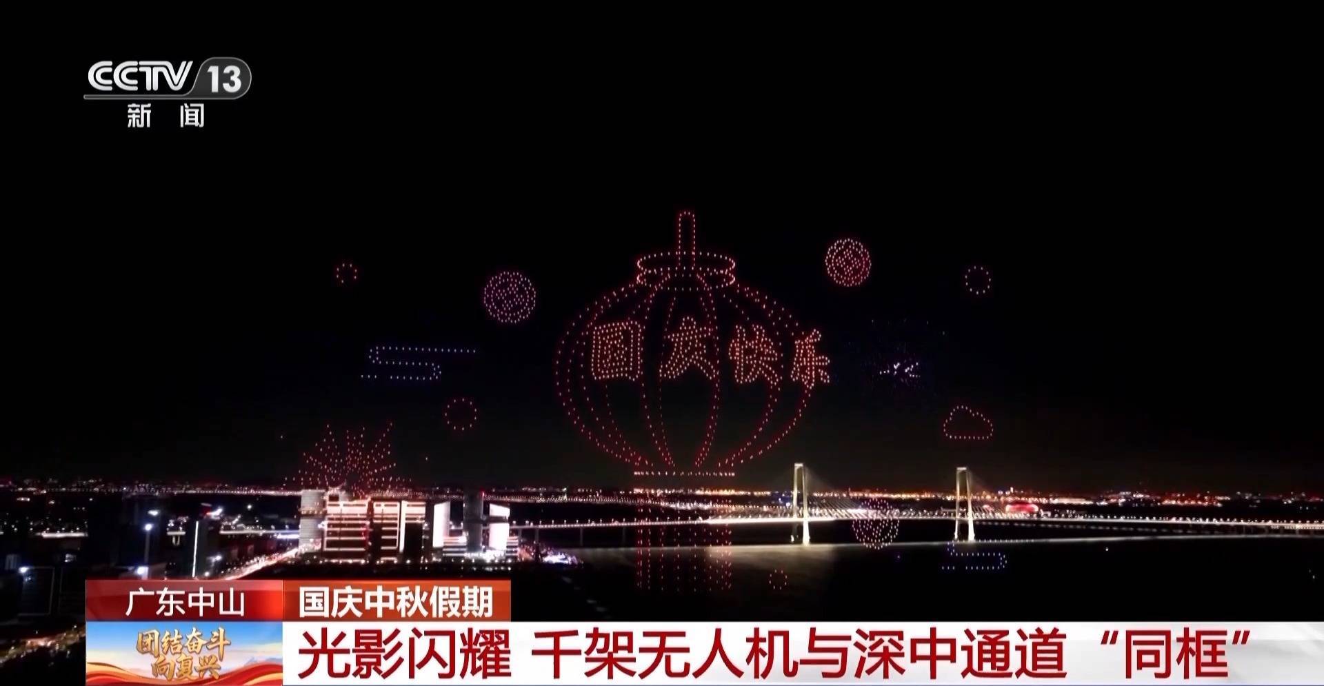 在广东中山,2000架无人机与深中通道“同框”,演绎动态光影画卷。表演以深中通道为背景,并融入中山特色元素,深中通道、桂山岐水自然风光、中山地道美食等系列中山标志性元素在空中一一展现,观众在现场踮脚仰望、举起手机记录,共同定格这场科技与文化交融的视觉盛宴。